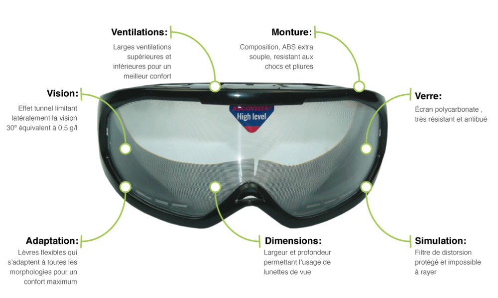En répétant ces exercices avec les lunettes de simulation Alcovista@ l’utilisateur se trouvera confronté à une situation d’ébriété au cours de laquelle il lutera pour maintenir un équilibre, accélérer les temps de réaction, se focaliser sur un objet, il maintiendra une conduite similaire à celle d’un individu sous l’emprise de l’alcool.